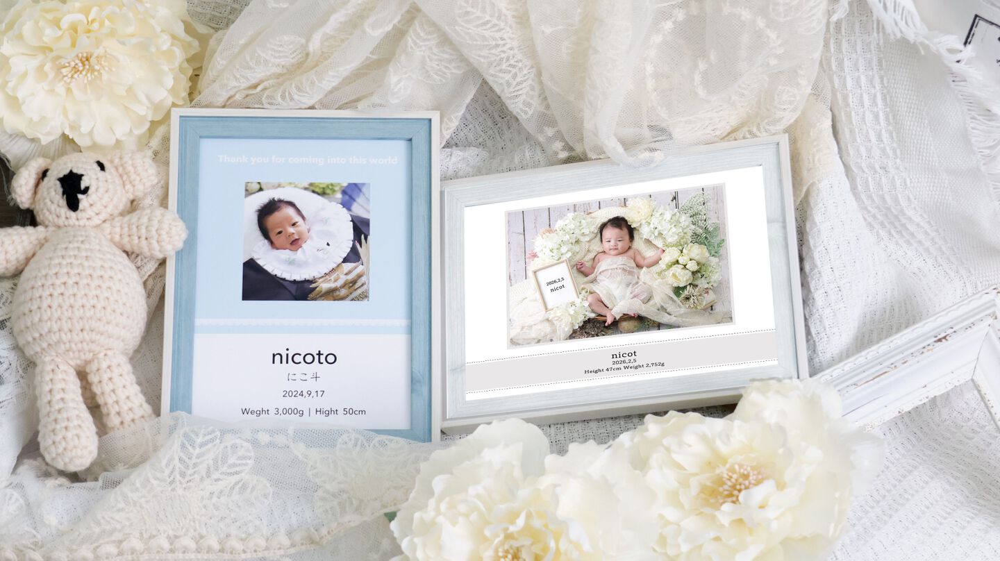 心を込めて名付けた我が子の誕生の記念に命名フレームをプレゼント。