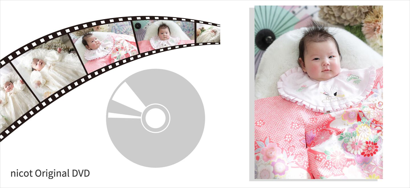データだけ欲しい、または撮影したすべてのデータが欲しいお客様にはデータDVDがオススメです。お子様のこの時の瞬間を永遠にお手元やスマホに残せます。